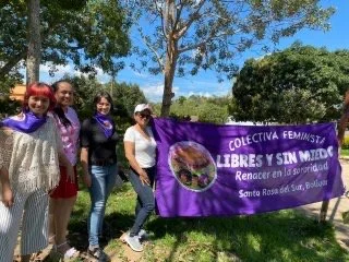 Luego de un largo periodo estudiando psicología en Bogotá, a inicios de 2020, cuando regresé a mi lugar de origen, Santa Rosa del Sur, Bolívar, me convencí de que mi pueblo sería un lugar seguro para las mujeres solamente si tenía una red de apoyo feminista. Un año después, junto con una compañera, convocamos a mujeres locales para formar el primer grupo feminista. Así nació la Colectiva Feminista Libres y Sin Miedo, la primera colectiva feminista del Sur de Bolívar.